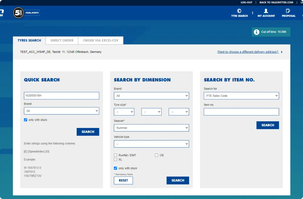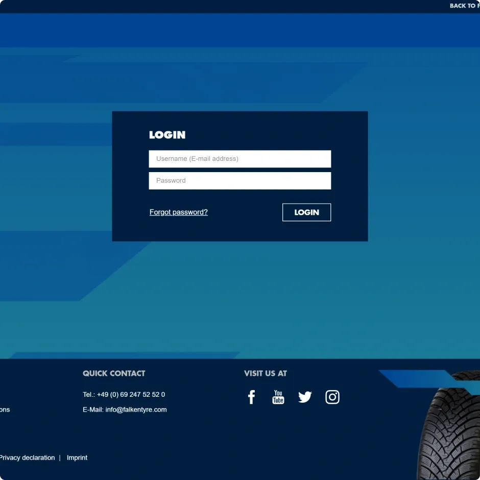 Falken Tyre manages the sale of tyres in 37 countries - a wide reach that requires challenging logistics and administration. Our customised B2B shop covers exactly this diversity and complexity, ensuring a seamless and efficient sales process.