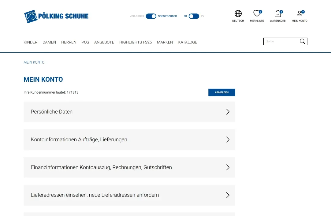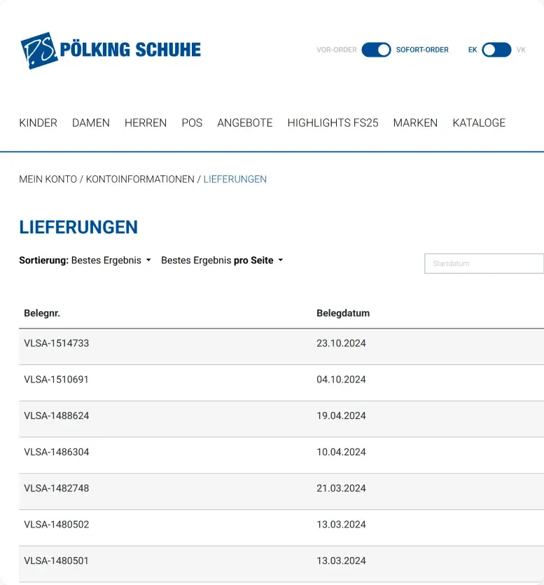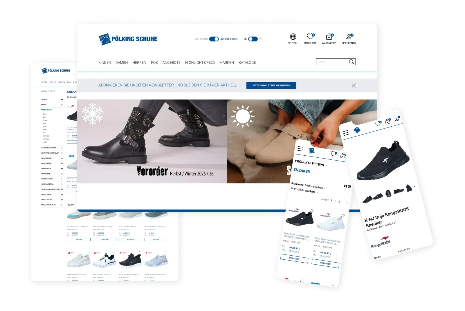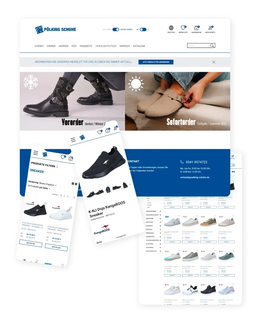 In view of globally unstable supply chains, forward-looking planning is essential. Together with Pölking Schuhe, we have further developed the B2B e-commerce processes and integrated a digital pre-order solution that optimises the ordering process and opens up international markets.
