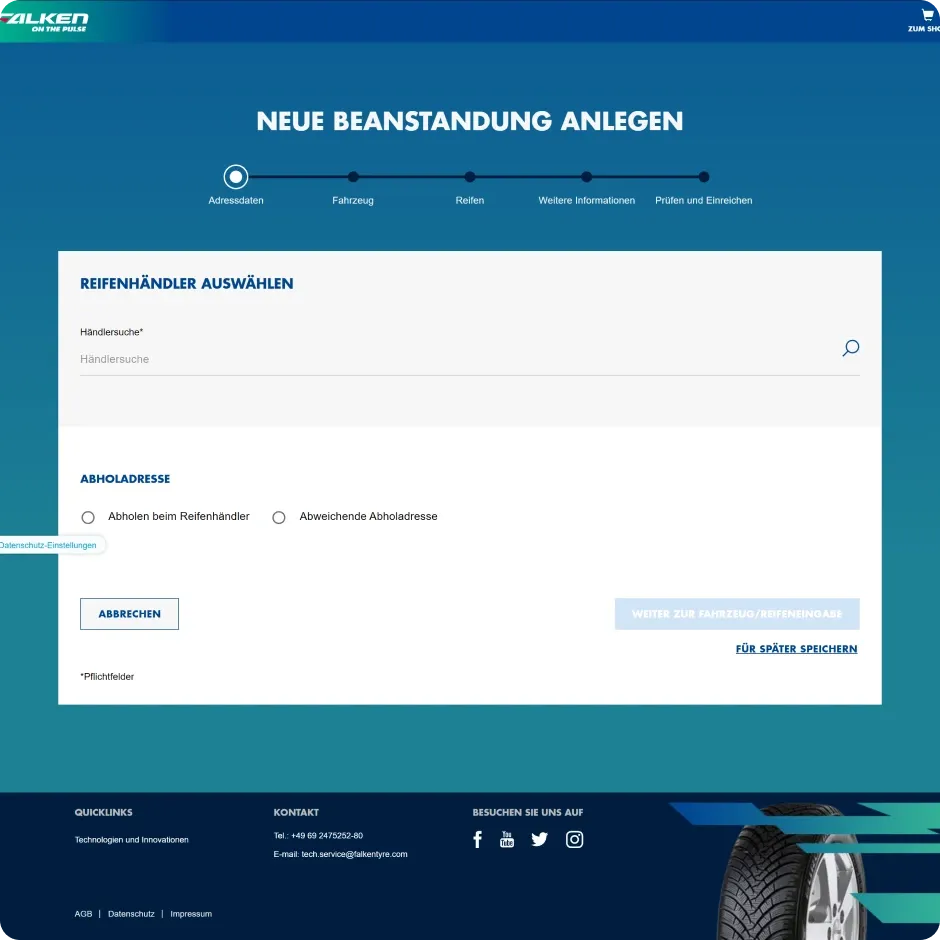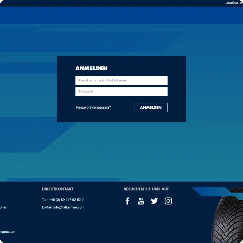 Vom User Interface bis hin zur Backend-Verwaltung haben wir eine Lösung entwickelt, die den Bedürfnissen von Falken Tyre in all diesen Vertriebsgebieten gerecht wird und gleichzeitig die Effizienz und Benutzerfreundlichkeit optimiert.