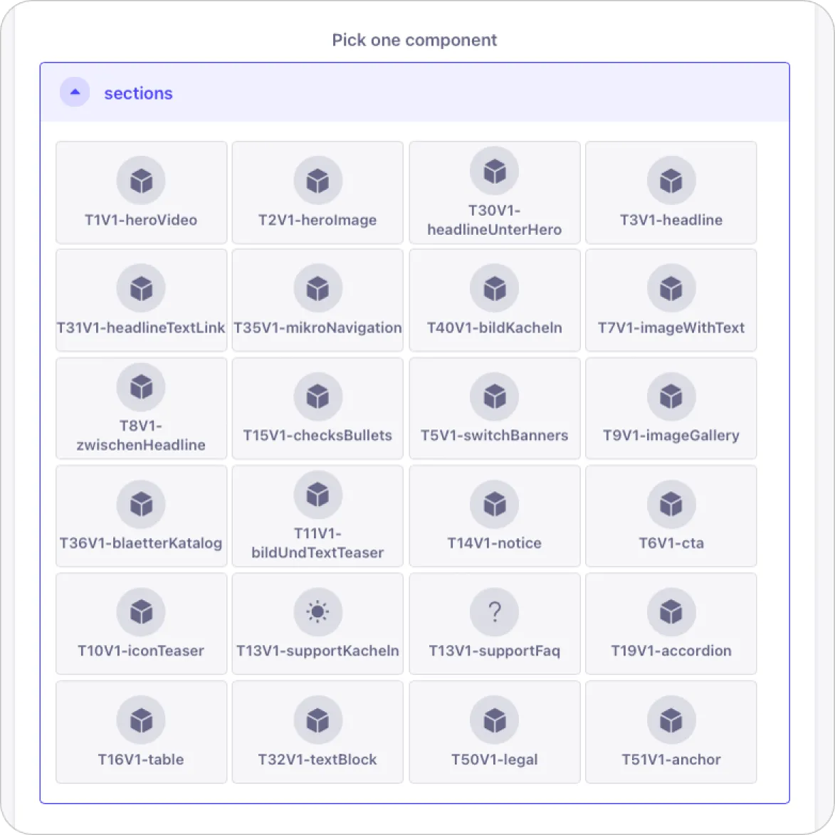 Unser Page Builder verfolgt einen komponenten-basierten Ansatz, um eine UI-Konsistenz zu gewährleisten und unnötige Variationen zu vermeiden.