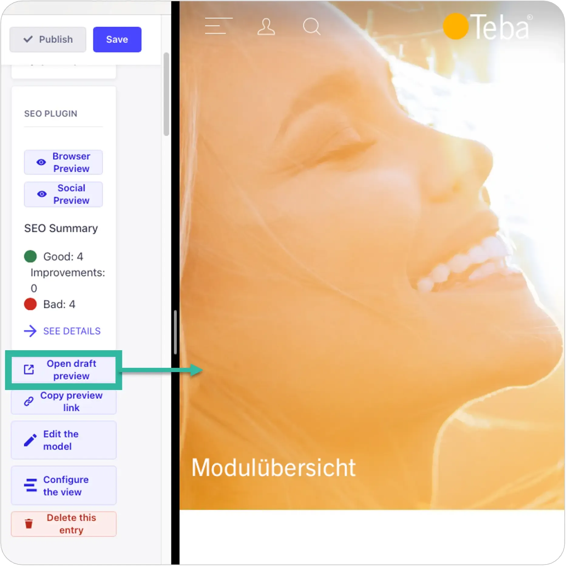 Eine integrierte Vorschaufunktion ermöglicht es die Inhalte vor der Fertigstellung und Veröffentlichung zu visualisieren.